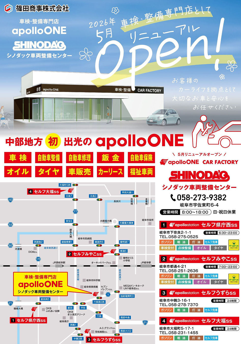 車検・整備専門店 apolloONE シノダック車両整備センターとしてリニューアルオープンすべく工事を進めてまいりました。